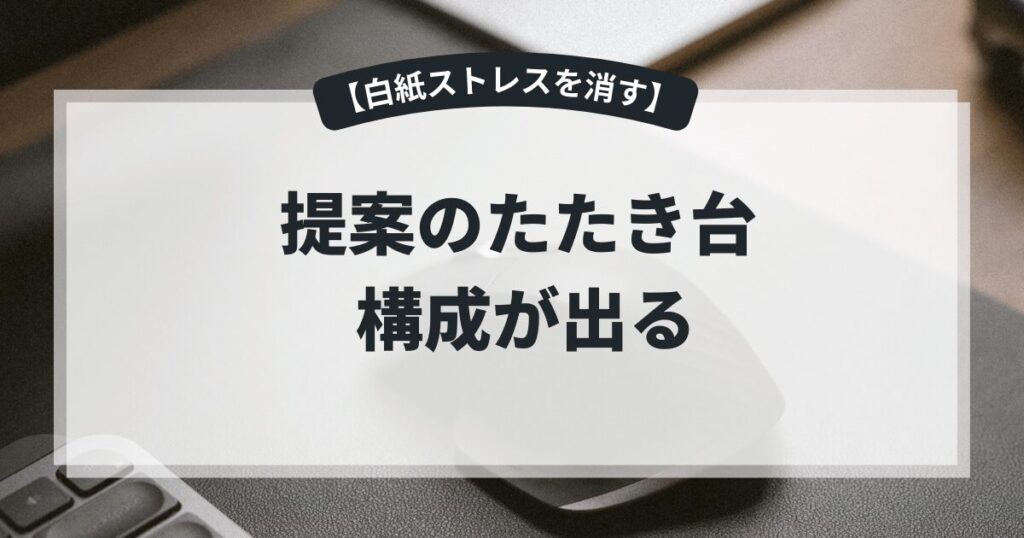 - 提案:構成が先に出るので白紙で止まらない(懸念と対策まで出せる)