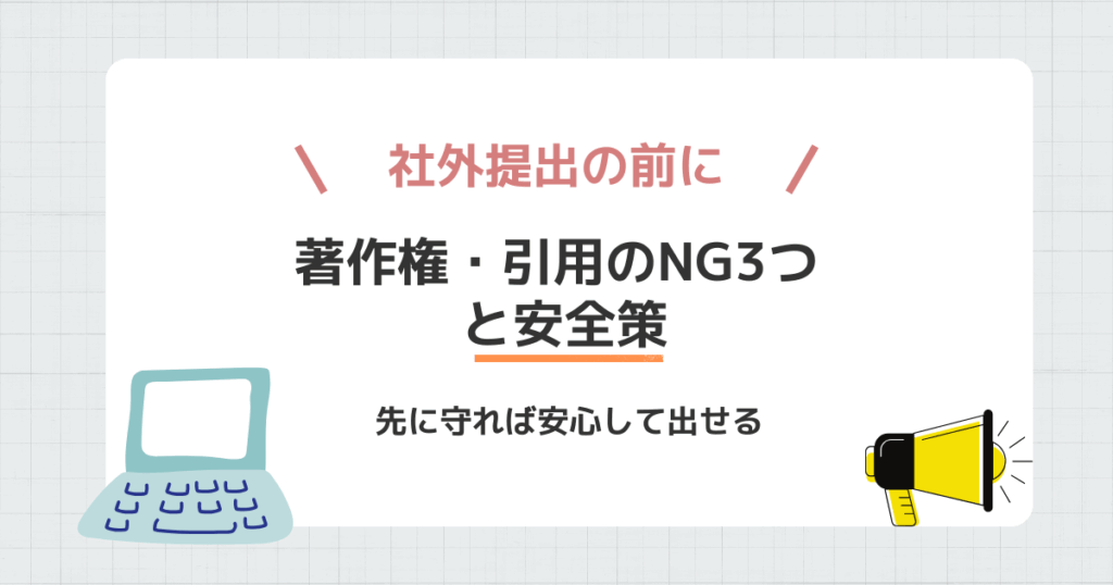社外提出の前に「出典が必要な箇所がないか」「言い回しが自分の言葉になっているか」を1分で確認します。