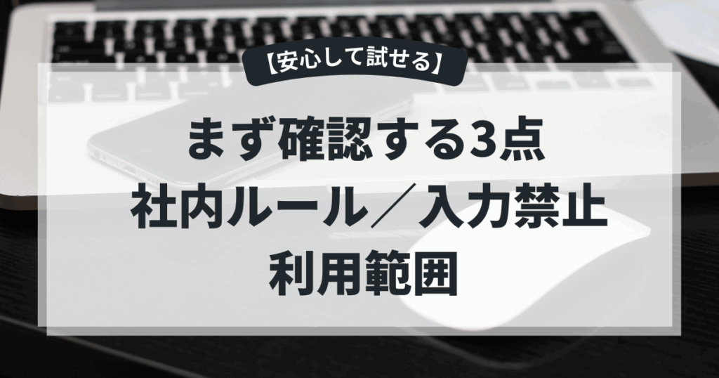 社内ルール・入力禁止・利用範囲の3点を先に確認し、機密や個人情報を入れない運用にします。