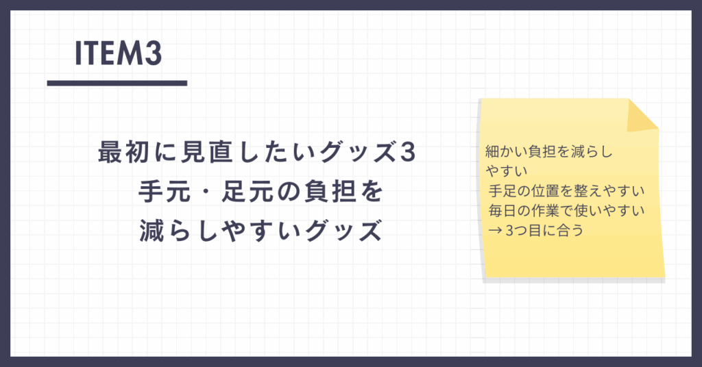 最初に見直したいグッズ3|手元・足元の負担を減らしやすいグッズ