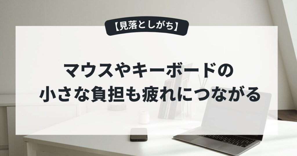 • マウスやキーボードまわりの小さな負担も疲れにつながりやすい