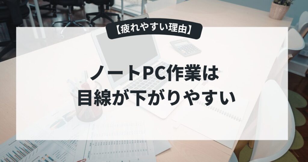 • ノートパソコン作業は、目線が下がりやすい