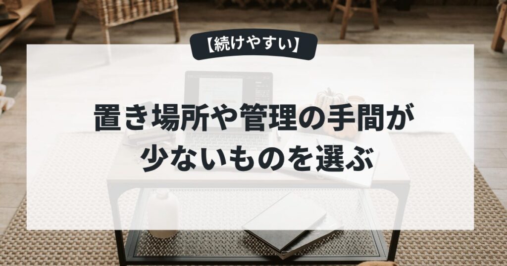 置き場所や管理の手間が少ないものは、無理が少なく続きやすいです。