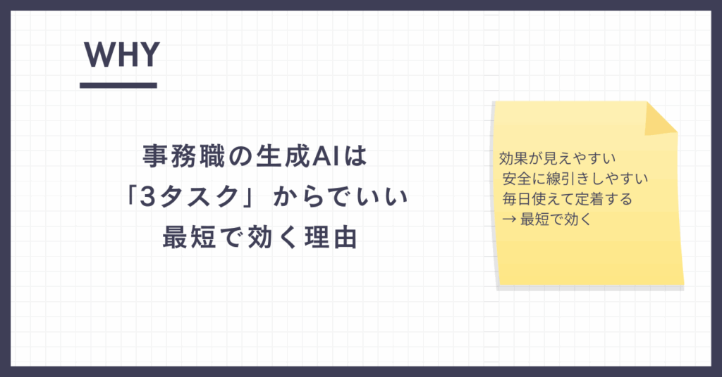 事務職の生成AIは「3タスク」からでいい(最短で効く理由)