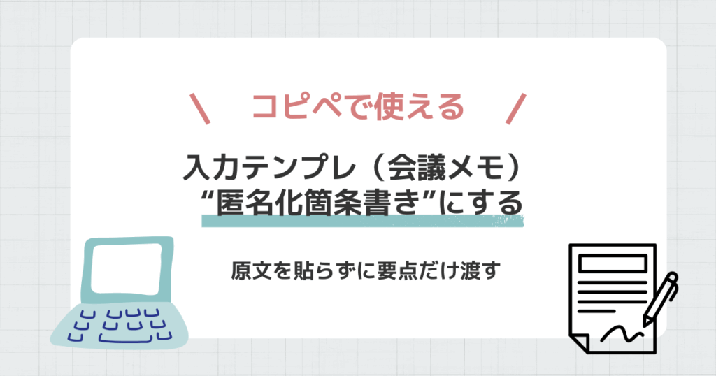 - 入力テンプレ(コピペ)|会議メモを“匿名化箇条書き”にする