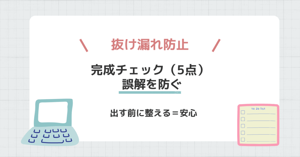 - 完成チェック(5点)|抜け漏れと誤解を防ぐ