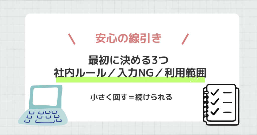 最初に決める“安心の線引き”(社内ルール/入力NG/利用範囲)
